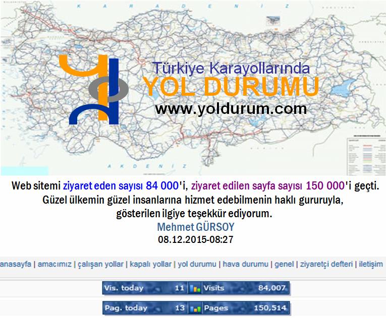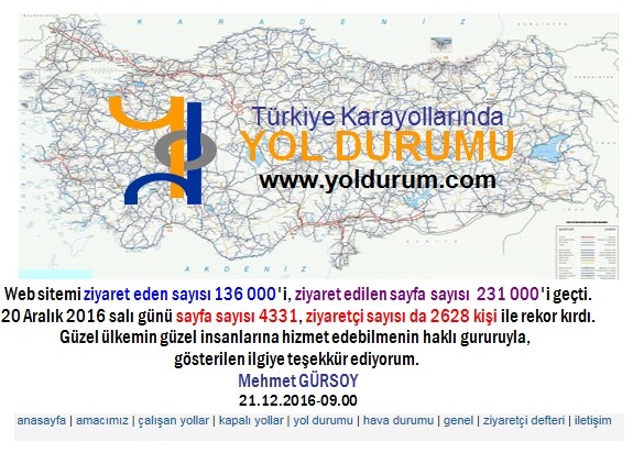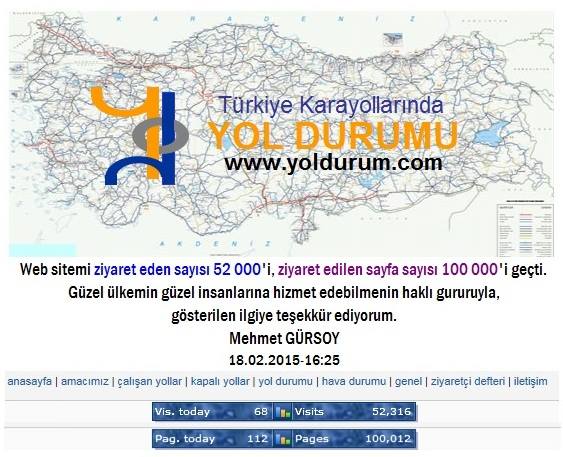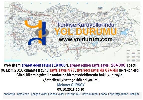 Ülkemizin karayollarında çalışma yapılan noktaların ve çeşitli nedenlerle kapalı olan kesimlerin, harita üzerinde gösterilmesi ile yol kullanıcılarının ;