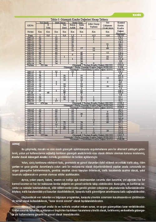 KONFOR ESASLI GÜZERGAH ANALİZİ dünya literatüründe olmayan "özgün" bir çalışmadır. Mehmet Gürsoy (İnş.Yük.Müh.) Karayolları Genel Müdürlüğü "Karayolları Bülteni"in 2015/3.sayısında yayımlanan bildiri sayfaları: